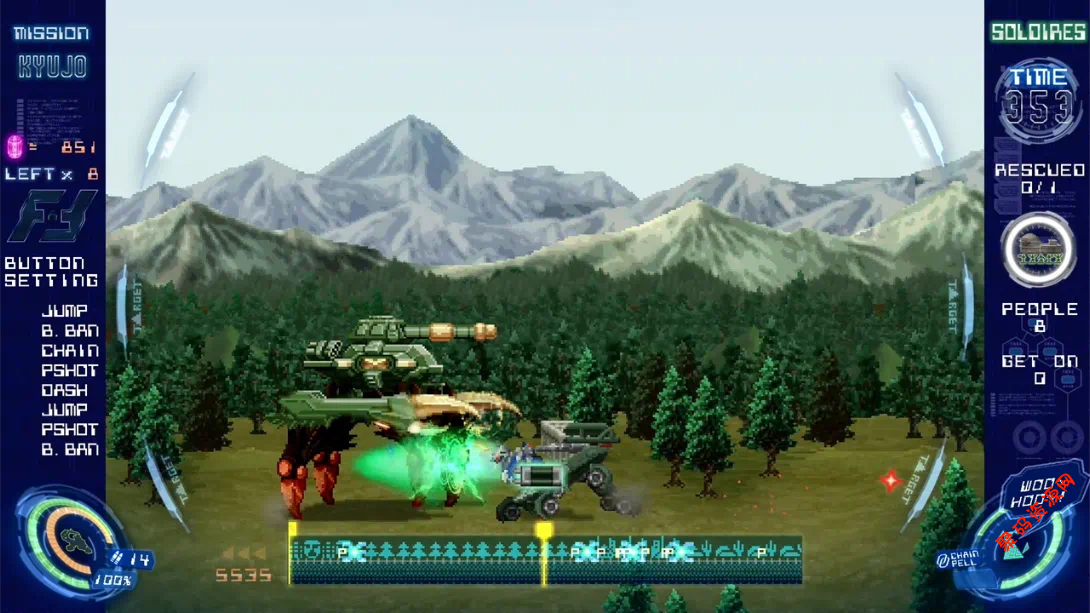 变形与合体系统:玩家操控可变合体机器人“EX-Pell”(Ixpel),与战机型的“EX Fighter”合体,切换为战车、水中型等不同形态,改变武器和性能。