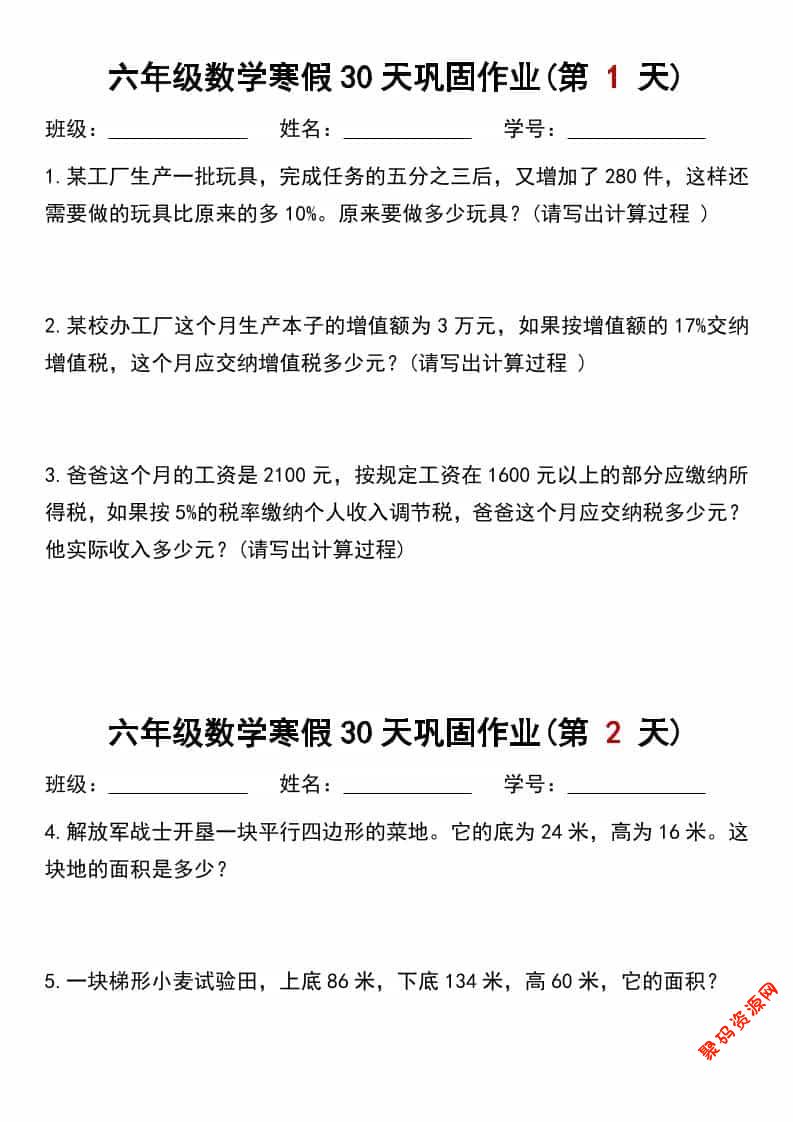 聚码网 六年级 六年级上数学寒假作业每日一练30天 http://www.appstore168.com/114527.html
