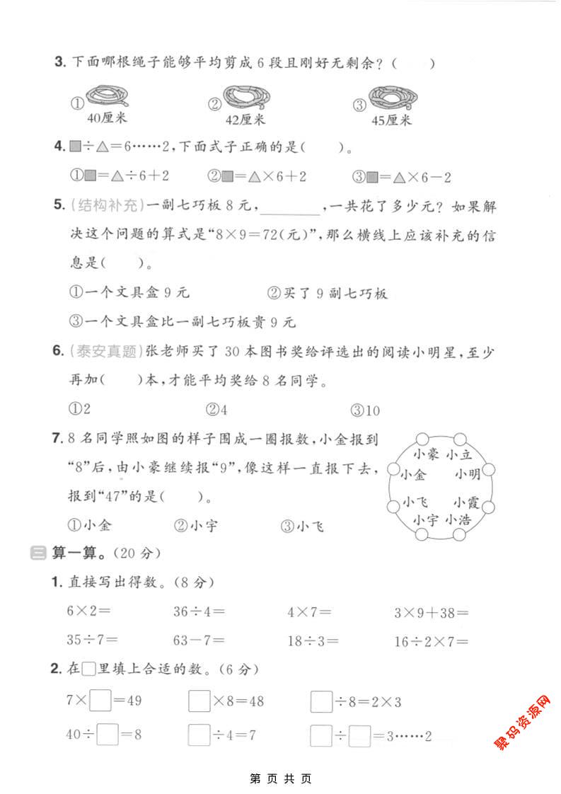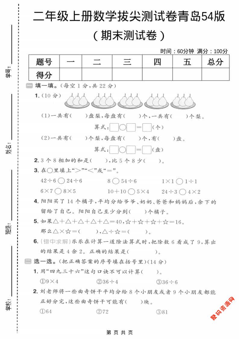 聚码网 二年级 二年级上数学期末拔尖测试卷5《青岛54版》 http://www.appstore168.com/114592.html