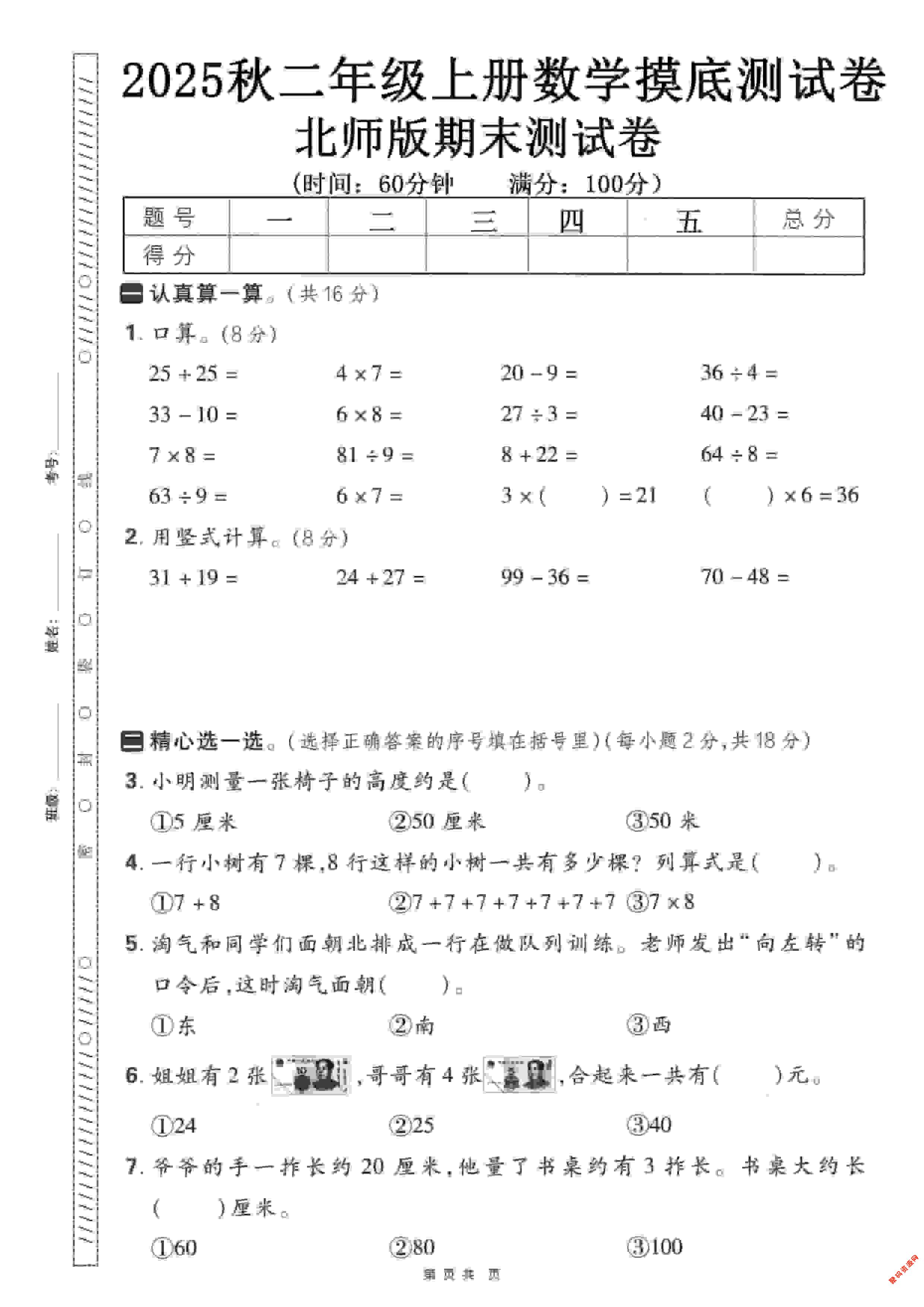 聚码网 二年级 二年级上数学期末押题模拟测试卷《北师版》(含答案25页) http://www.appstore168.com/114600.html