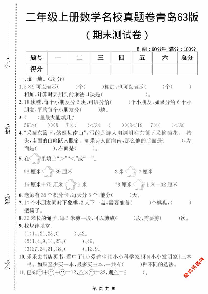 聚码网 二年级 二年级上数学期末名校真题卷3《青岛63版》 http://www.appstore168.com/114613.html