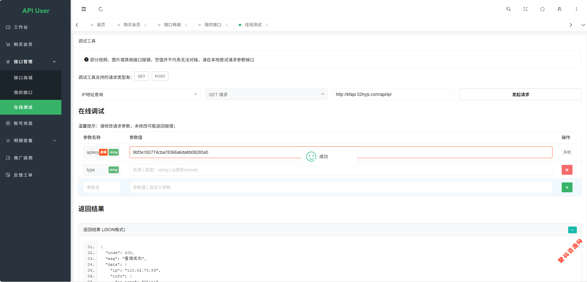 系统采用模块化设计,每个API接口都可以独立配置计费规则。管理员可以轻松添加新的API接口,设置接口参数、返回格式和计费标准。用户可以在线测试API接口,查看实时调用结果和错误信息。
