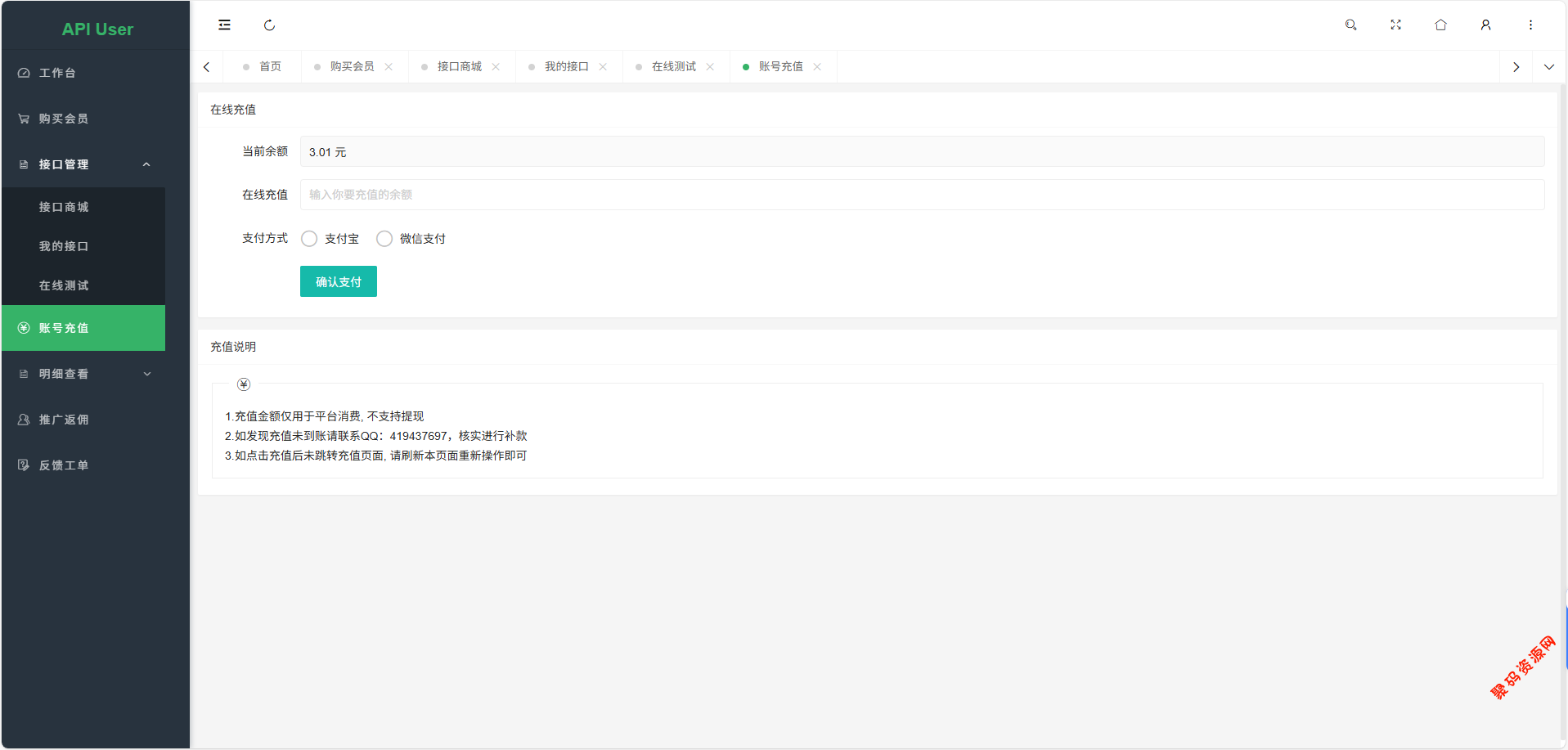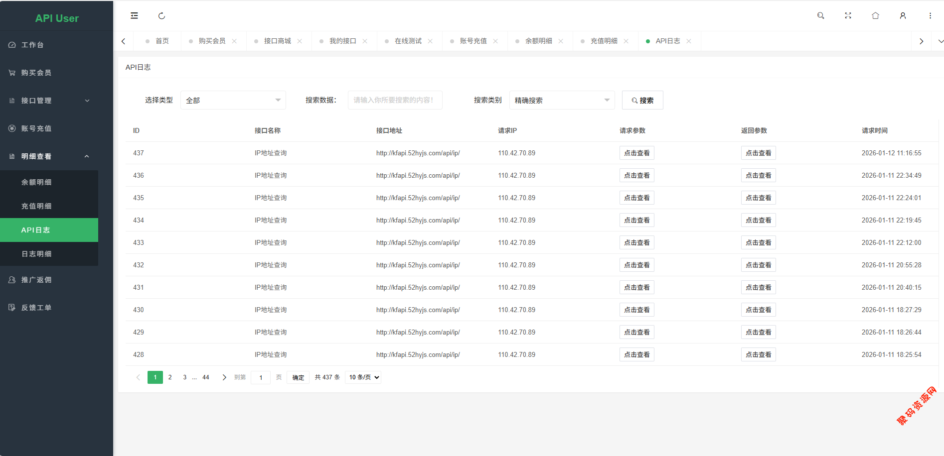 系统内置完善的用户管理系统,支持用户注册、登录、API密钥管理、余额充值、套餐购买等功能。用户可以查看自己的调用记录、消费明细和账户余额。系统自动统计每个API的调用次数、成功率和响应时间,为管理员提供数据支持。