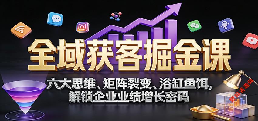 本套全域获客六大策略课程,专为企业经营者、营销负责人打造,聚焦全域获客核心方法论。课程系统拆解营销获客六大思维,涵盖矩阵思维下的全网霸屏打法、传统企业适用的 1+1+N 矩阵营销法则;深度讲解裂变思维的病毒式传播技巧,揭秘消费品靠裂变实现年销 3.5 亿的秘籍;还传授浴缸思维的流量租卖模式、鱼饵思维的终身锁客方法,以及平台思维的生态链接策略。搭配运营思维业绩提升公式,全程案例驱动,助力企业突破获客瓶颈,搭建全域获客增长体系。