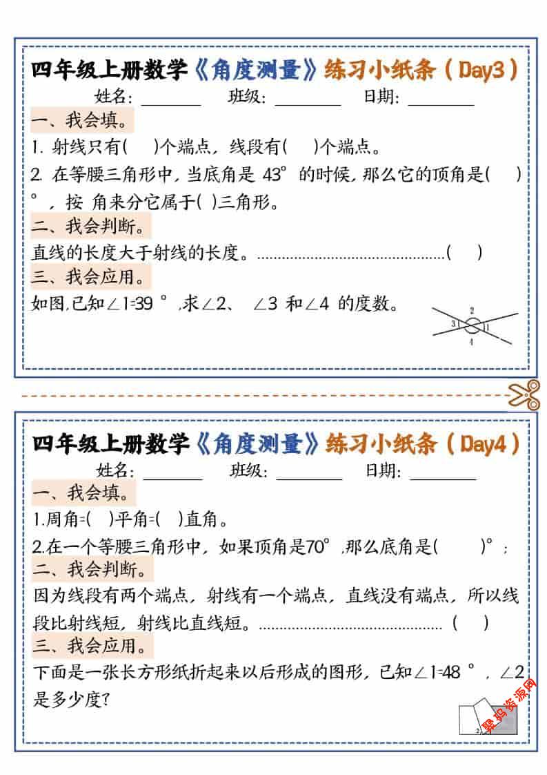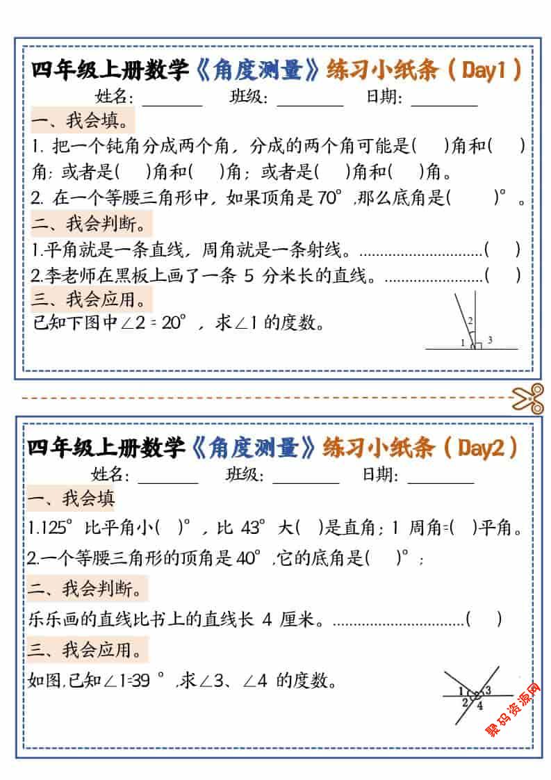 聚码网 四年级 四年级上数学角度测量复习小纸条 http://www.appstore168.com/114812.html