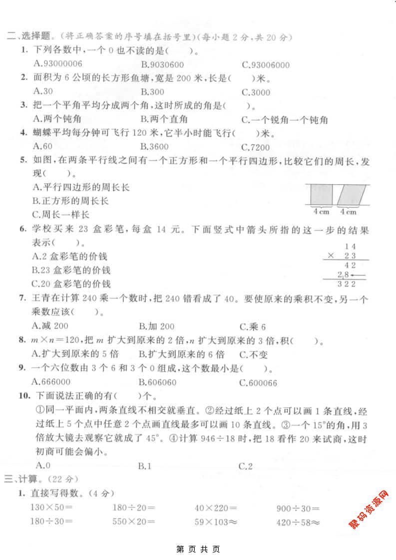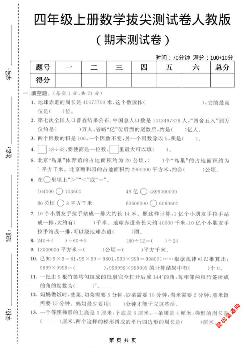 聚码网 四年级 四年级上数学期末拔尖测试卷5《人教版》 http://www.appstore168.com/114815.html