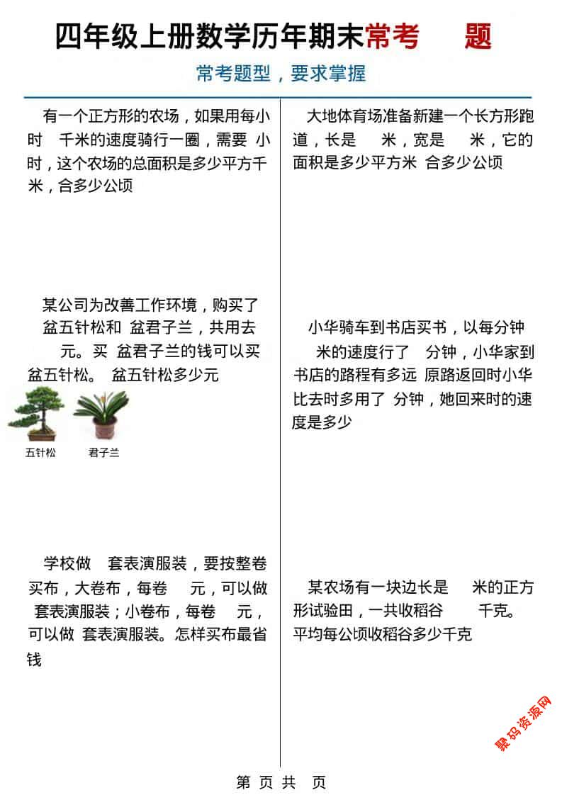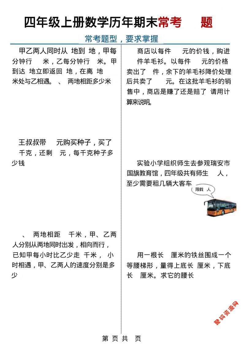 聚码网 四年级 四年级上数学历年期末常考应用题40题 http://www.appstore168.com/114837.html