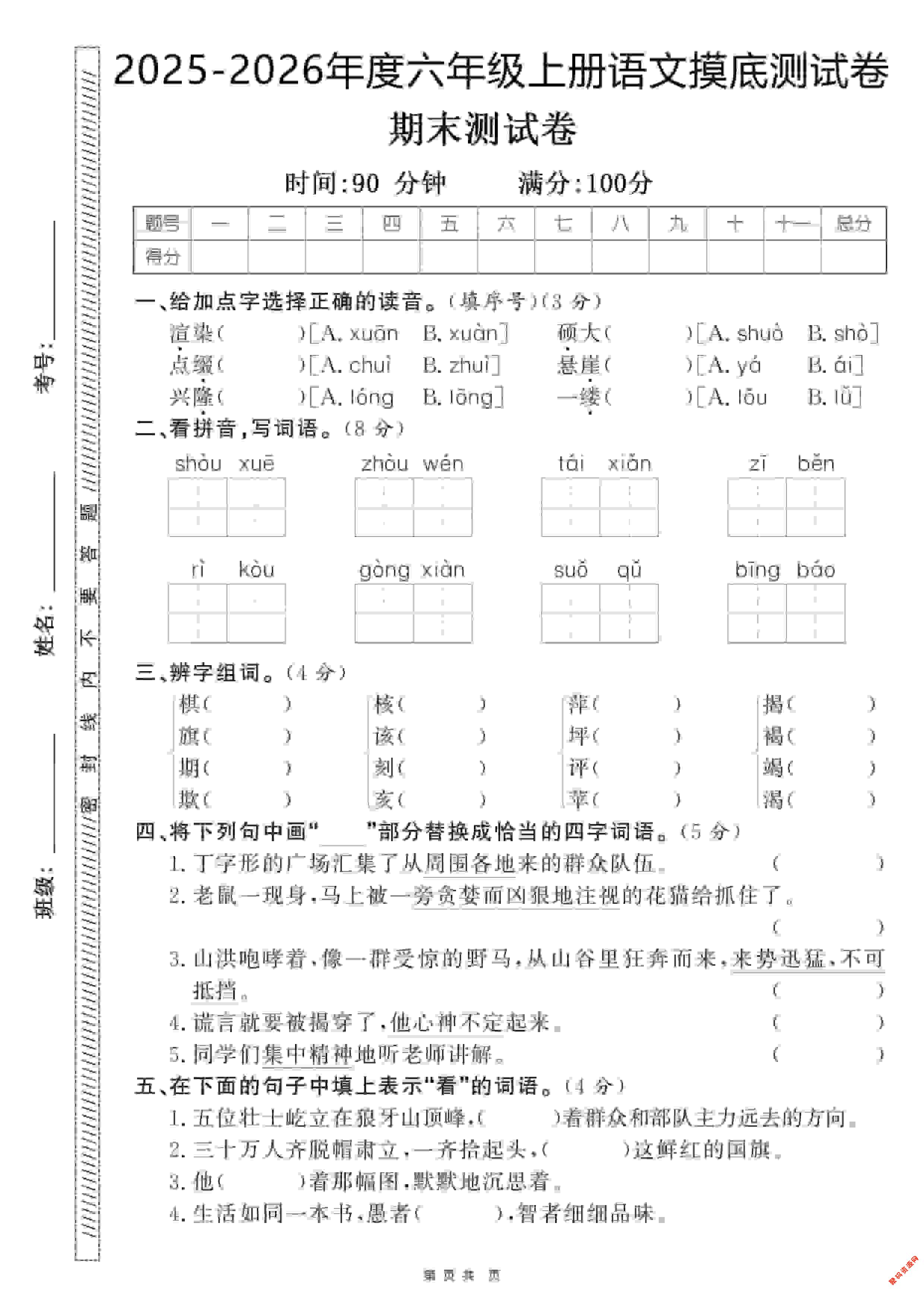 - 六下语文看拼音写生字–写字表(空白) 2026-02-25
