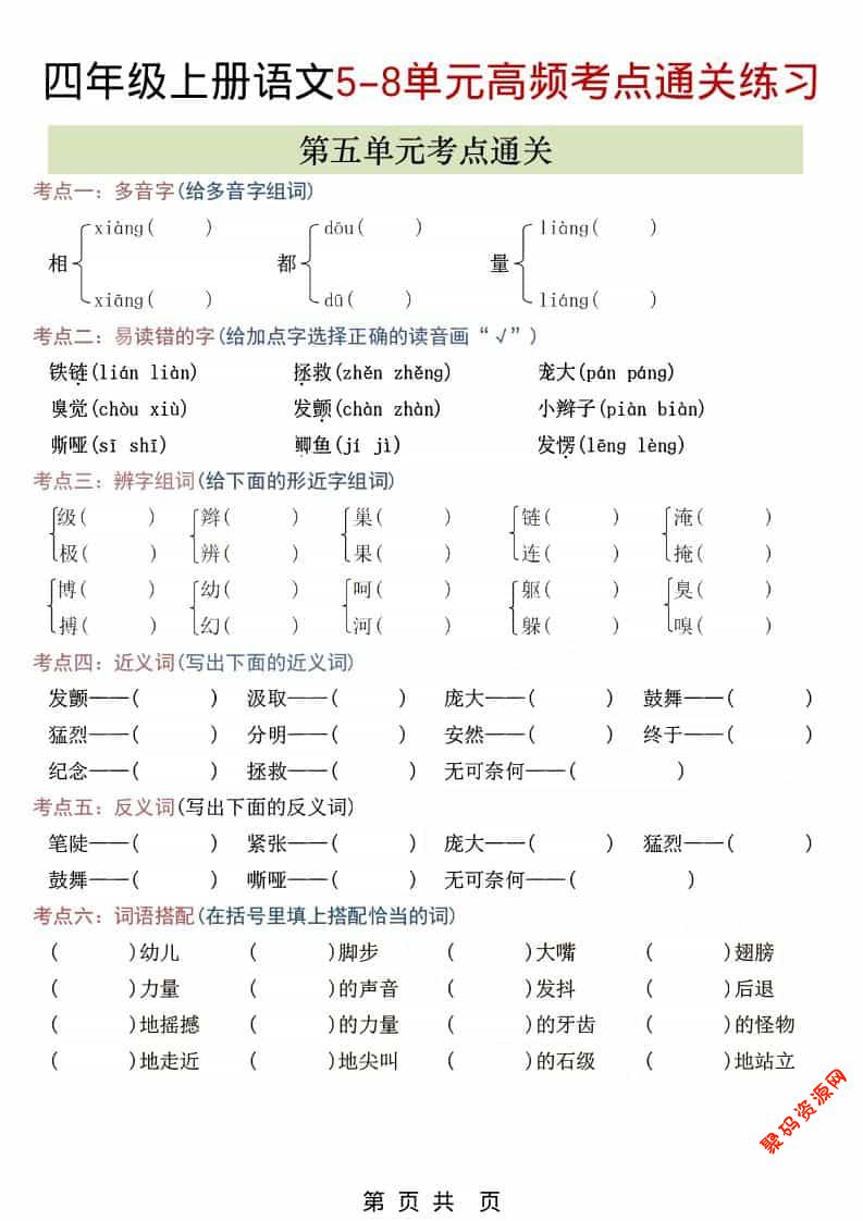 聚码网 四年级 四年级上语文5-8单元高频考点练习 http://www.appstore168.com/115030.html