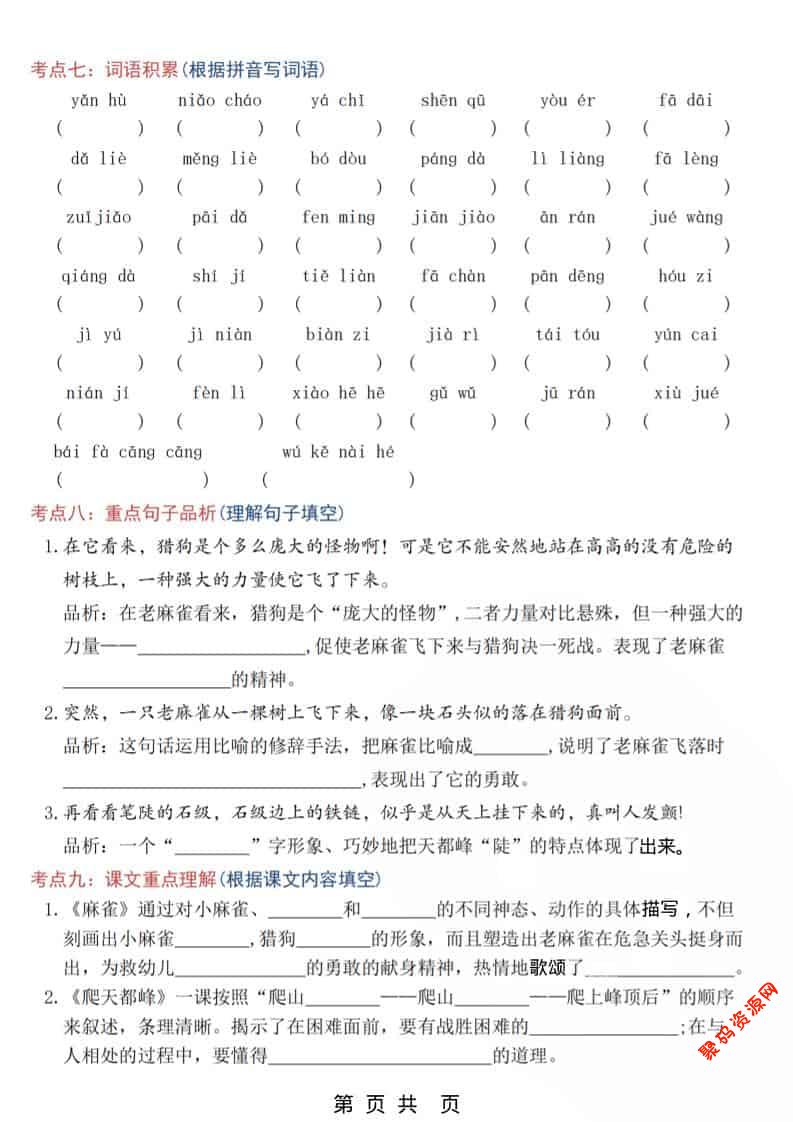 - 四下语文寒假预习全册必背知识汇总27页 2026-02-18
