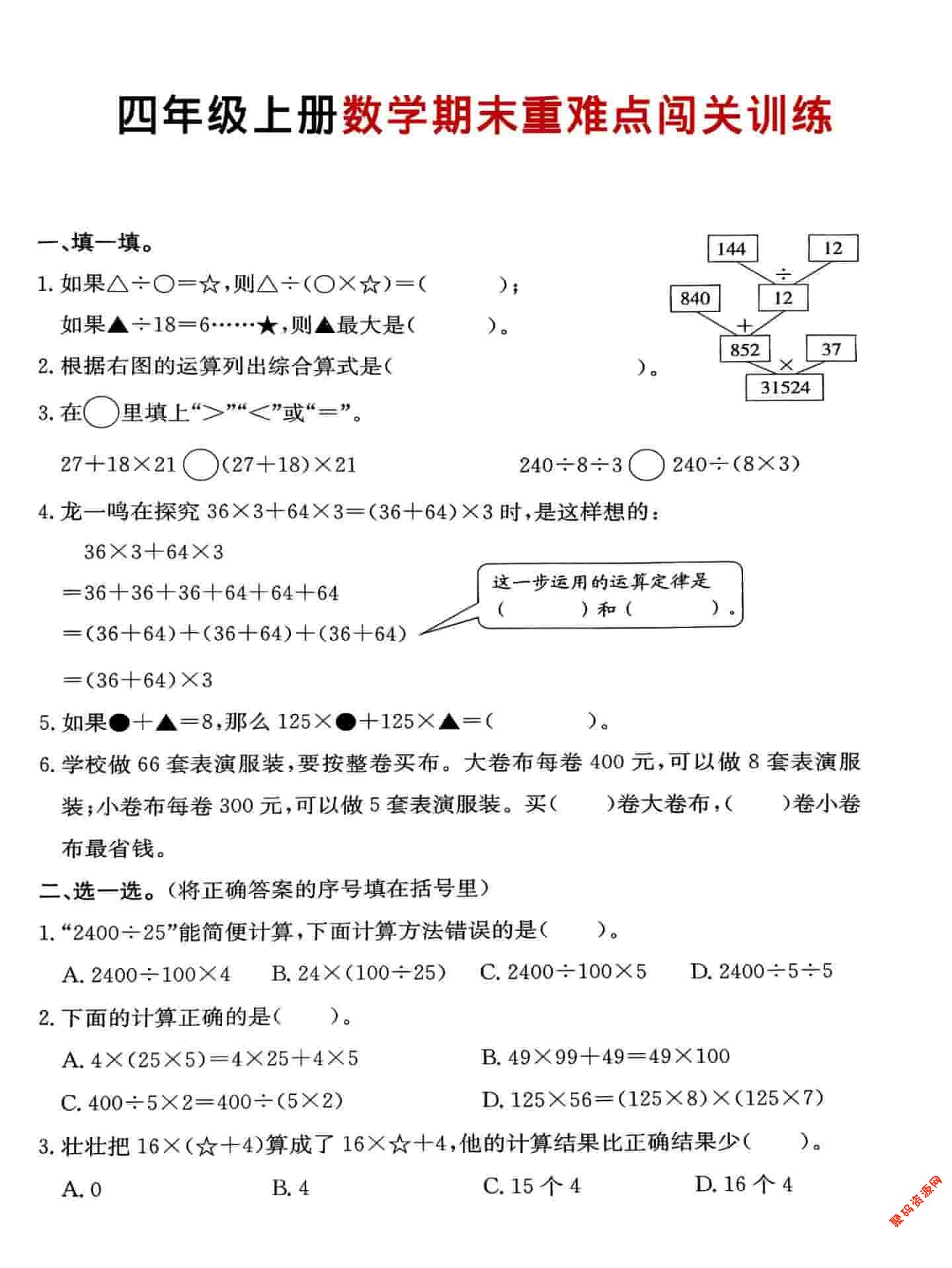 聚码网 四年级 四年级上数学期末重难点闯关训练 http://www.appstore168.com/115036.html