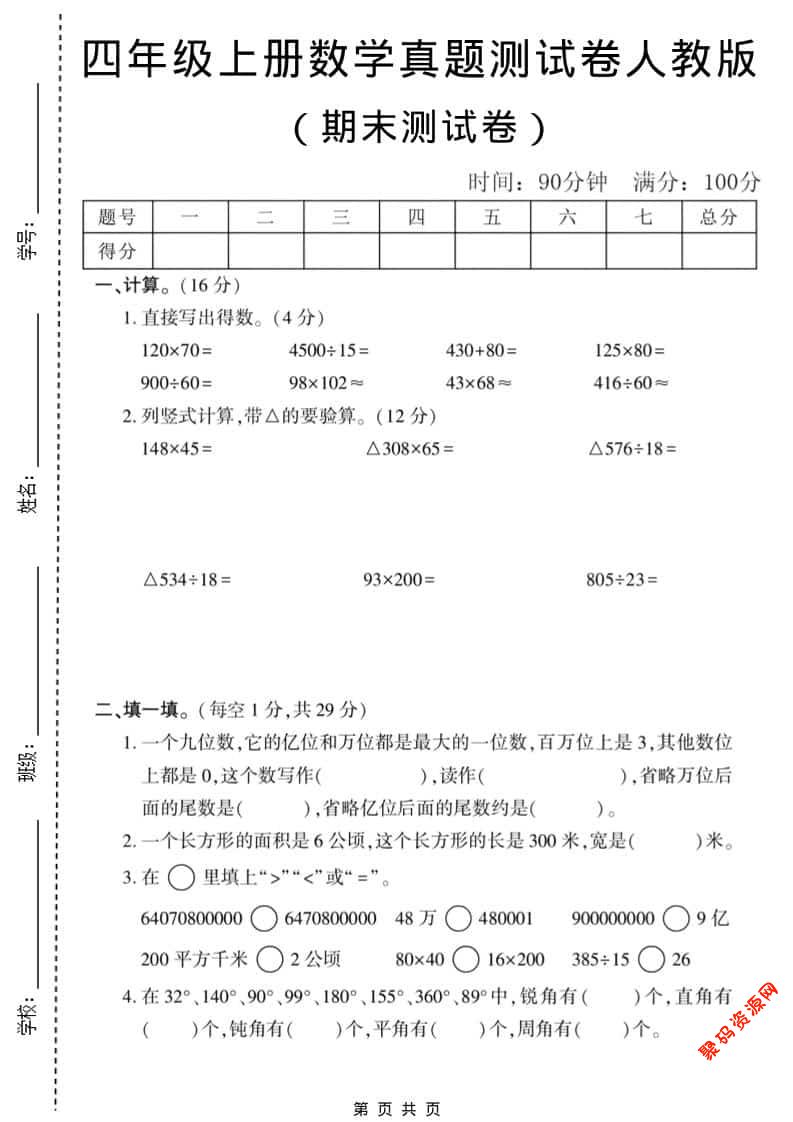 聚码网 四年级 四年级上数学期末真题测试卷1《人教版》 http://www.appstore168.com/115042.html
