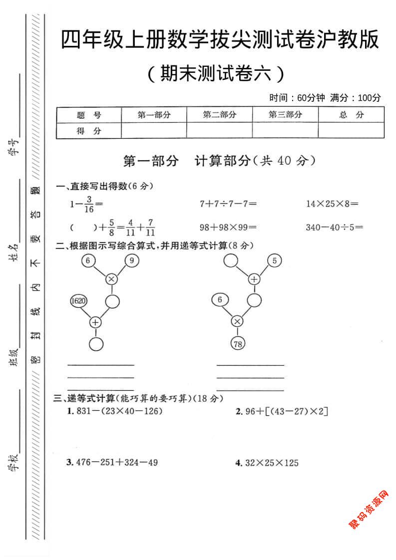 聚码网 四年级 四年级上数学期末测试卷6《沪教版》 http://www.appstore168.com/115047.html