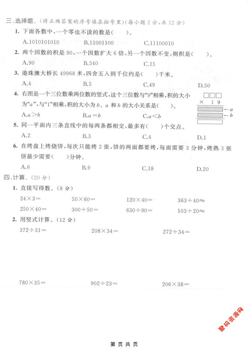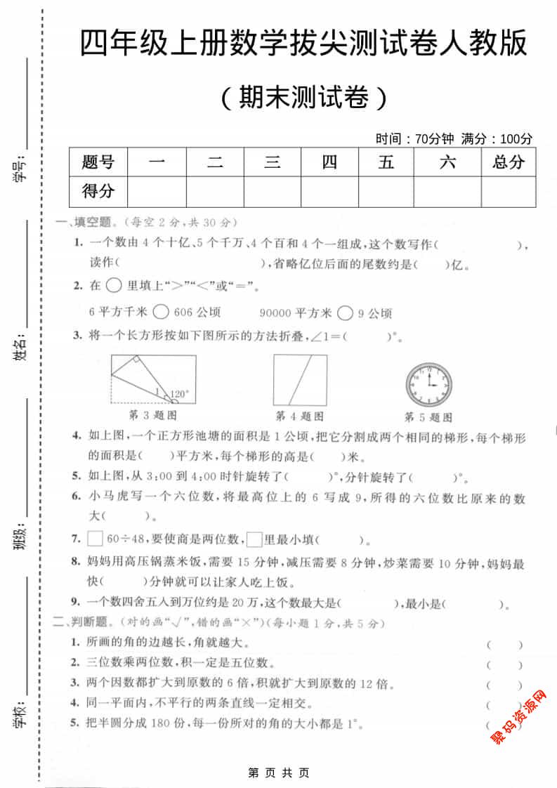 聚码网 四年级 四年级上数学期末测试卷2《人教版》 http://www.appstore168.com/115065.html