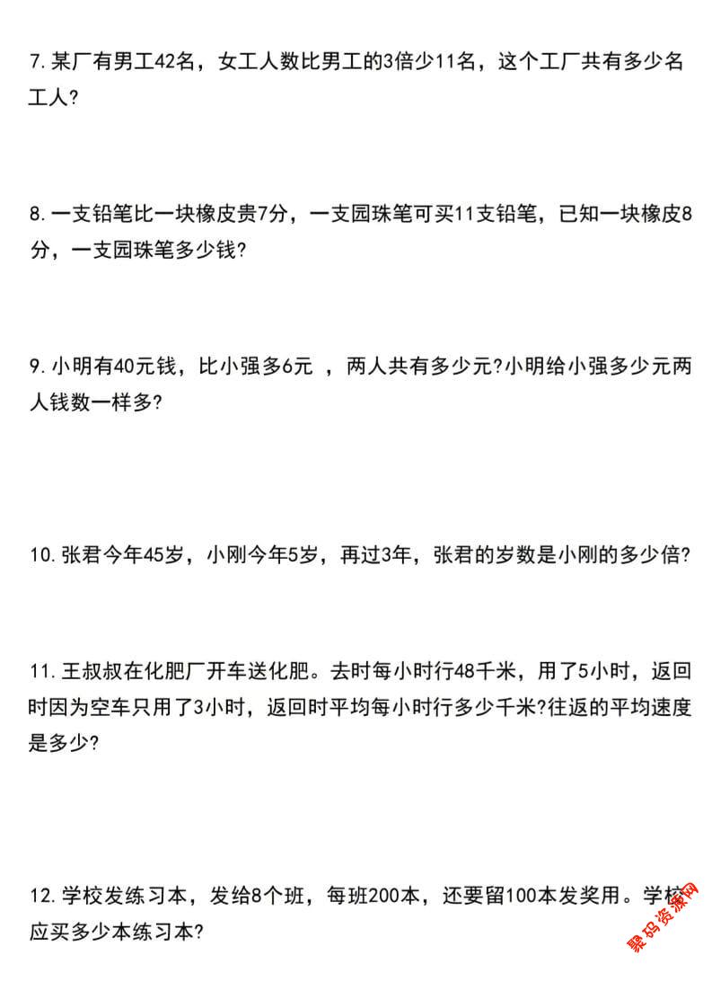 聚码网 四年级 四年级上数学期末常考易错应用题训练 http://www.appstore168.com/115100.html