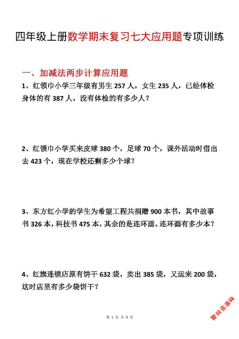 聚码网 四年级 四年级上数学期末复习七大应用题专项训练 http://www.appstore168.com/115115.html