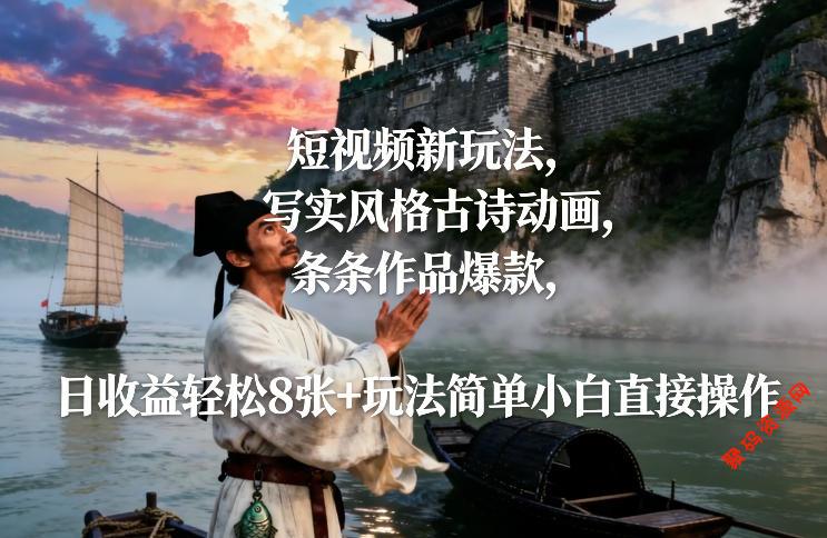 短视频新玩法,写实风格古诗动画,条条作品爆款,日收益轻松8张+玩法简单小白直接操作