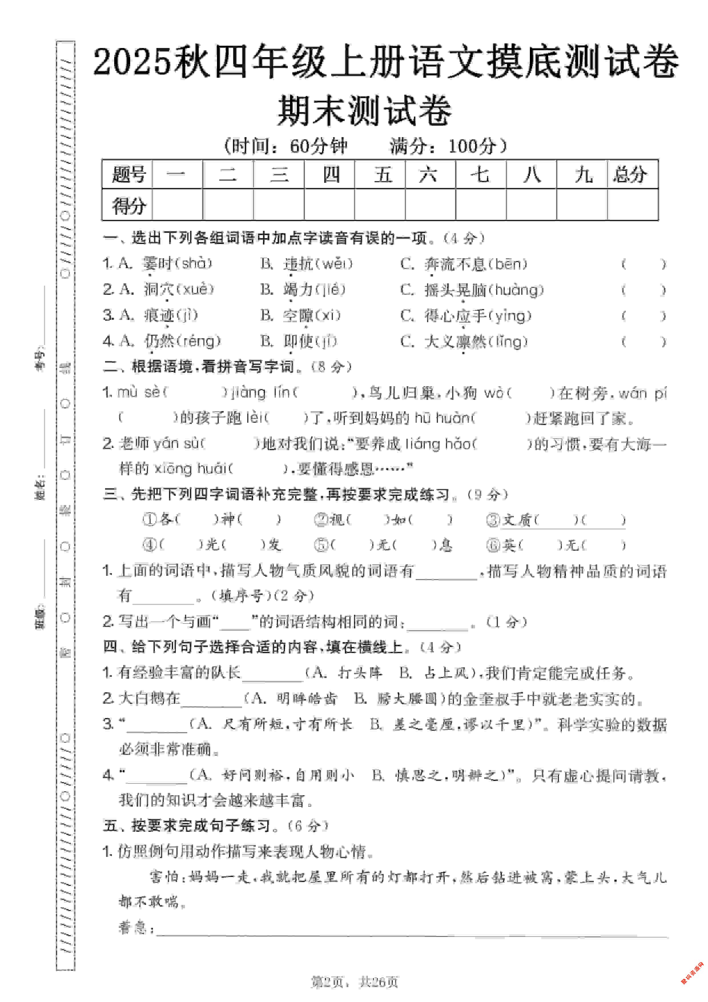 - 四年级下册语文看生字写拼音–识字表 2026-02-25