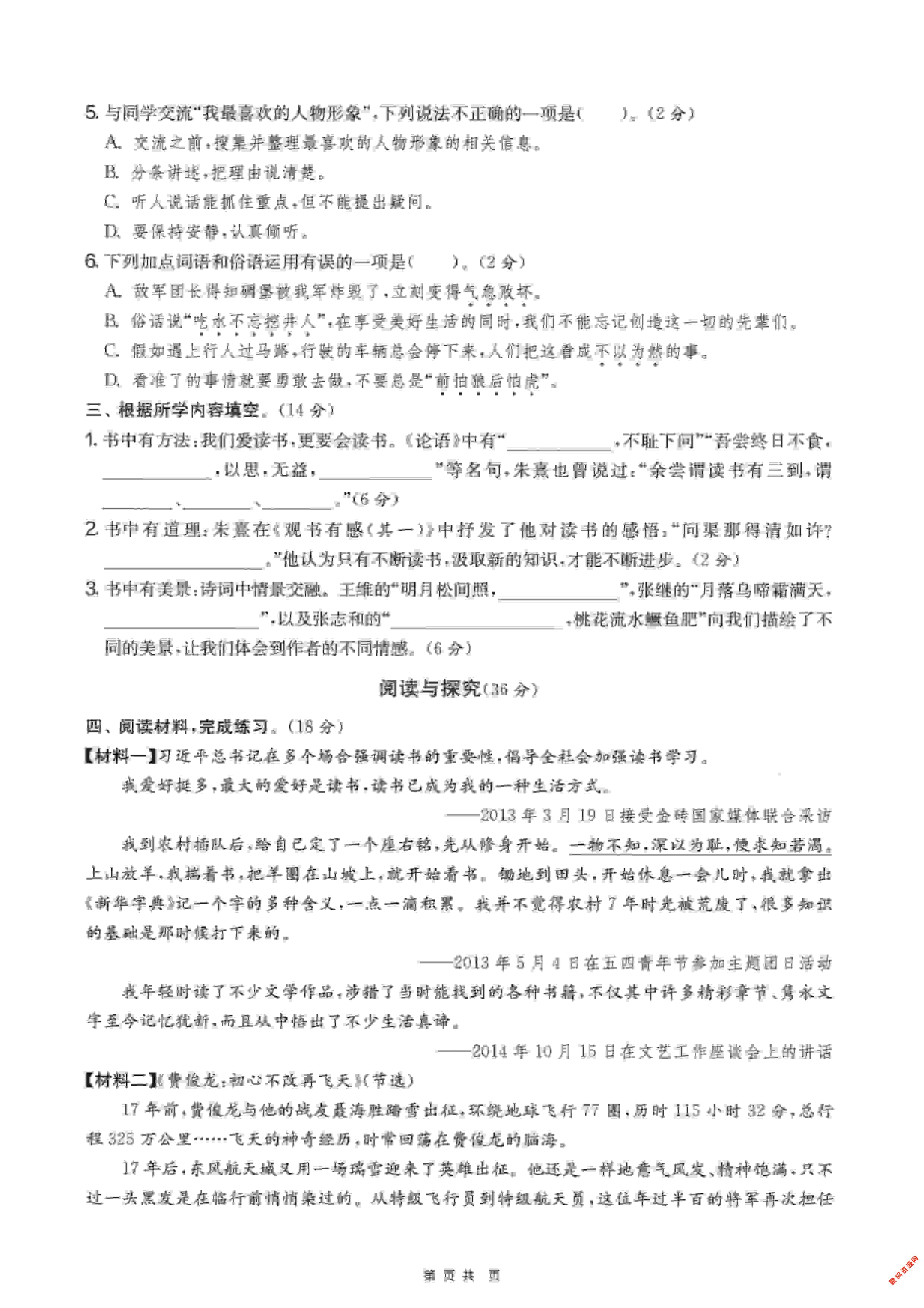 - 2026五年级语文下寒假作业每日一练 2026-02-16