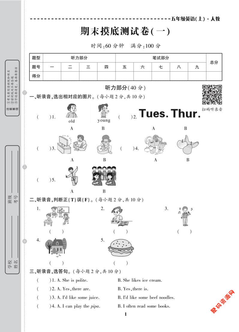 聚码网 五年级 五年级上英语期末复习试卷全10套《人教版PEP》 http://www.appstore168.com/115328.html