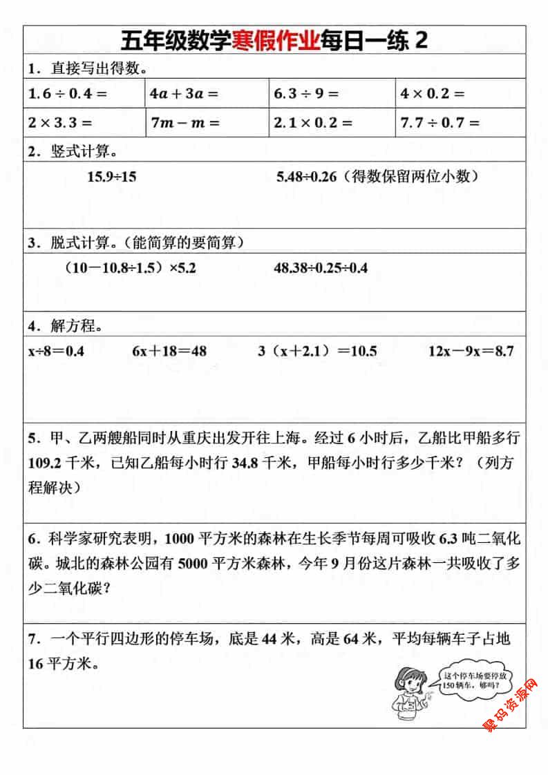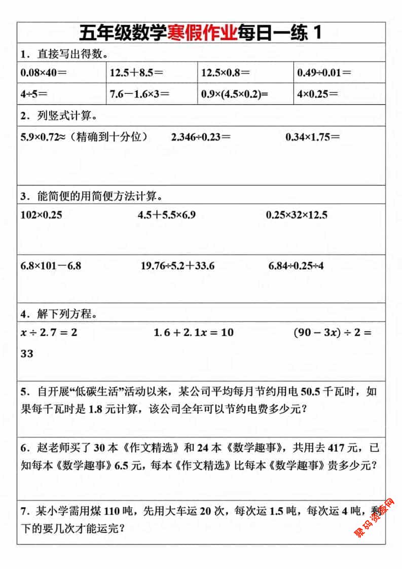 聚码网 五年级 五年级上数学寒假作业每日一练(30天) http://www.appstore168.com/115378.html
