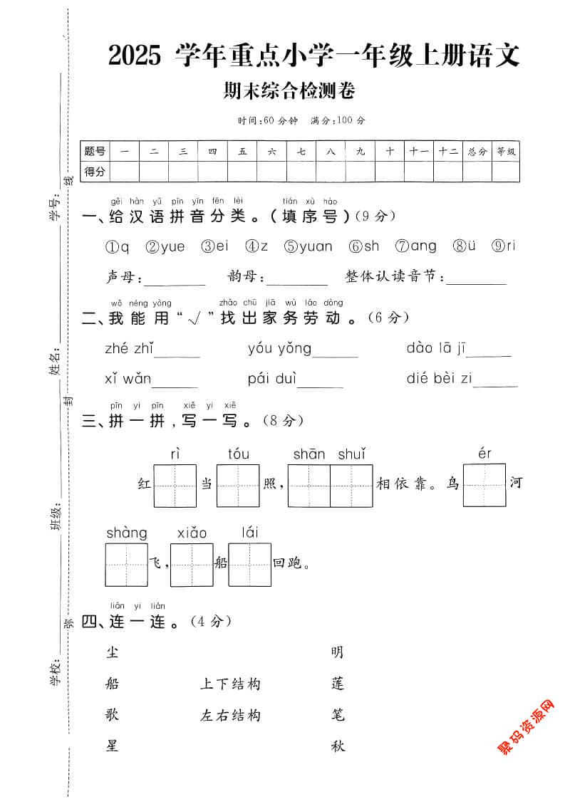 聚码网 一年级 一年级上语文期末综合检测卷 http://www.appstore168.com/115385.html
