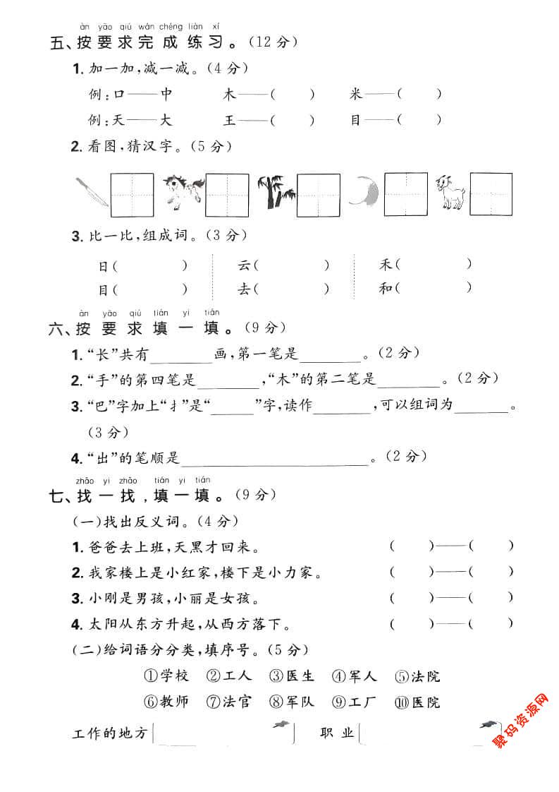 - 一年级下语文【识字表+写字表】专项练 2026-02-25