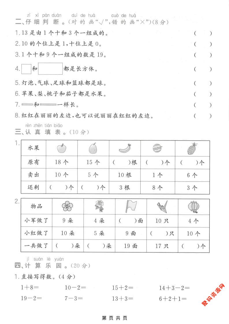 - 一年级下数学20以内加减法综合卷 2026-02-24