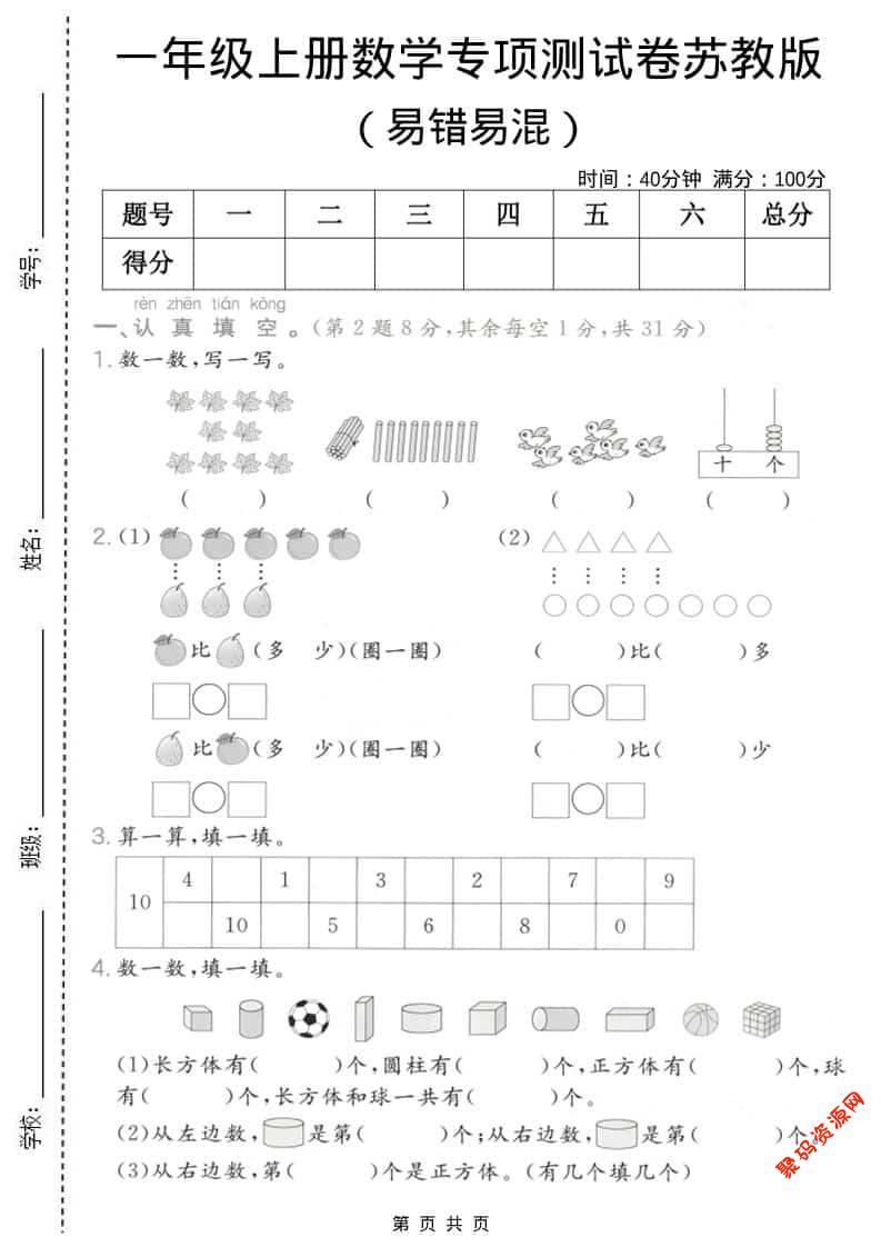 聚码网 一年级 一年级上数学易错易混专项测试卷《苏教版》 http://www.appstore168.com/115405.html