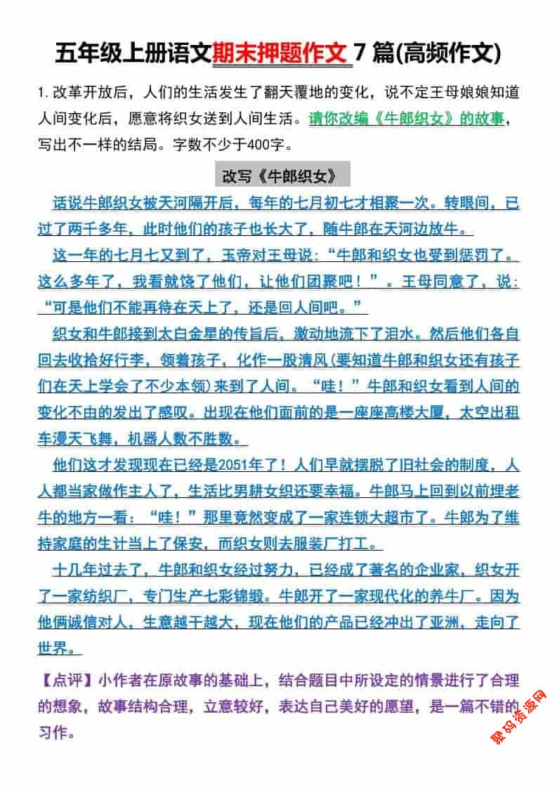 聚码网 五年级 五年级上册语文期末押题作文7篇(高频作文) http://www.appstore168.com/115578.html