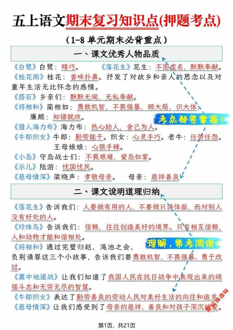 聚码网 五年级 五上语文期末复习知识点(押题考点) http://www.appstore168.com/115581.html