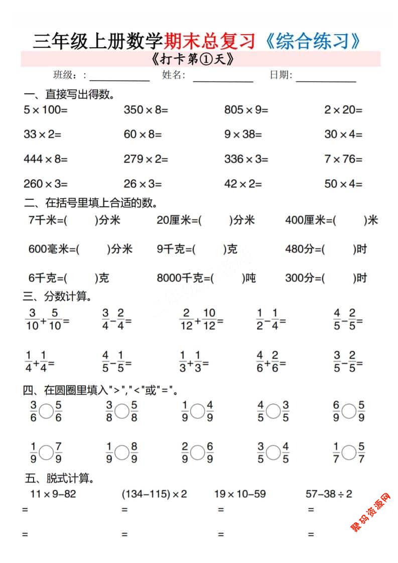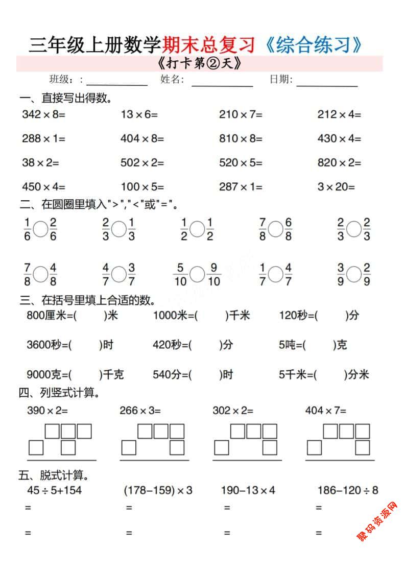 聚码网 三年级 三上数学期末总复习专项综合练习10页 http://www.appstore168.com/115589.html