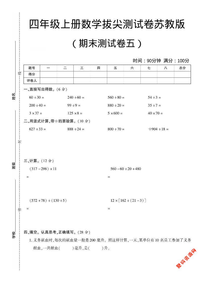 聚码网 四年级 四年级上数学期末测试卷五《苏教版》 http://www.appstore168.com/115614.html