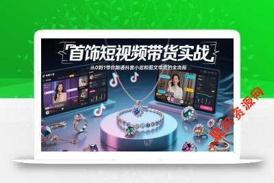首饰短视频带货实战,适合做首饰带货的新人准备的实操课,从 0 到 1 带你跑通抖音小店和图文带货的全流程。主要内容包括:账号基础、定位和橱窗开通讲起,再到视频和图文起号的具体方法,包括对标账号分析、素材获取、爆款制作和 AI 工具的使用。