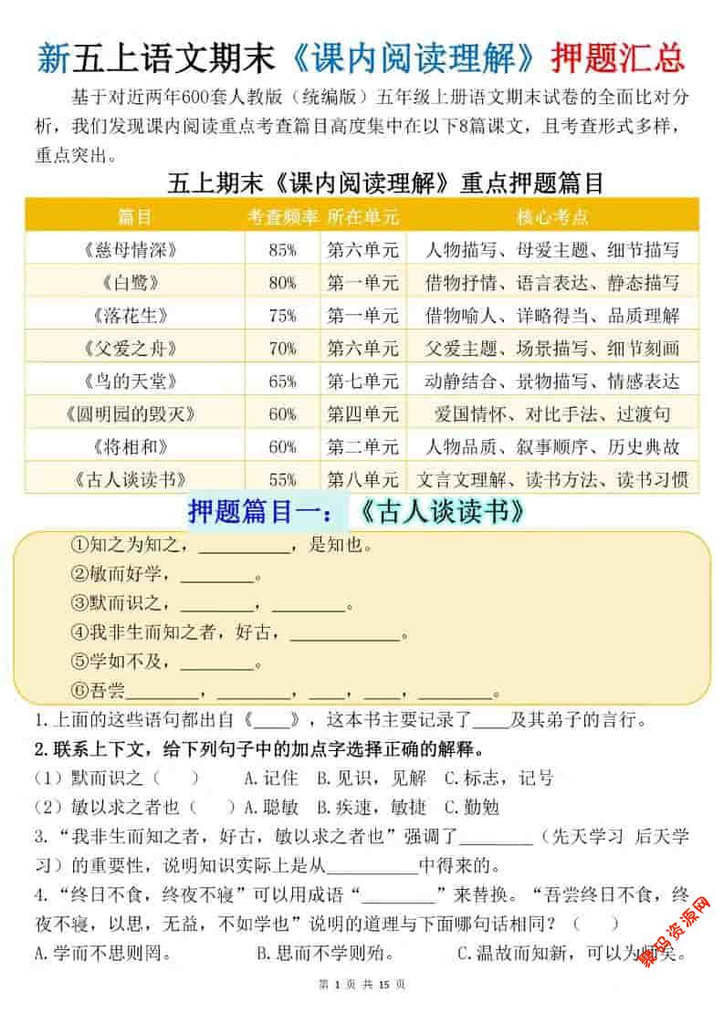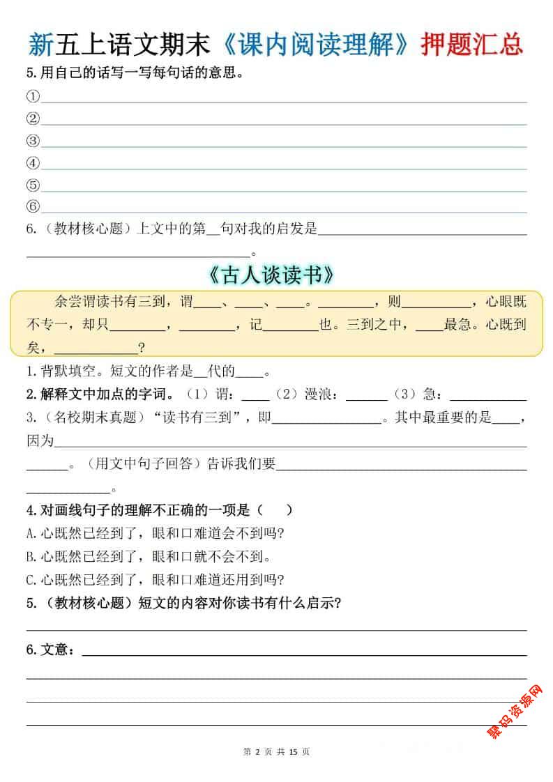 聚码网 五年级 新五上语文期末《课内阅读理解》押题汇总 http://www.appstore168.com/115866.html