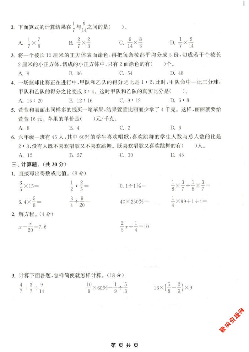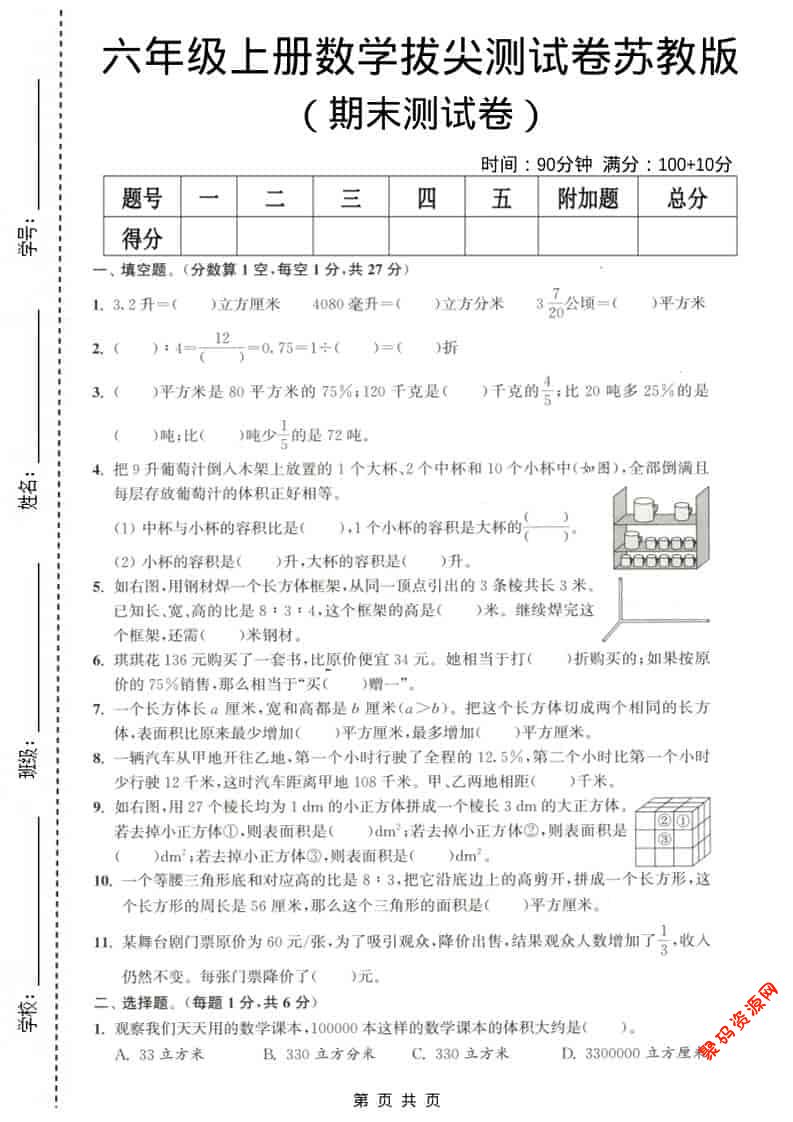 聚码网 六年级 六年级上数学期末测试卷3《苏教版》 http://www.appstore168.com/115877.html