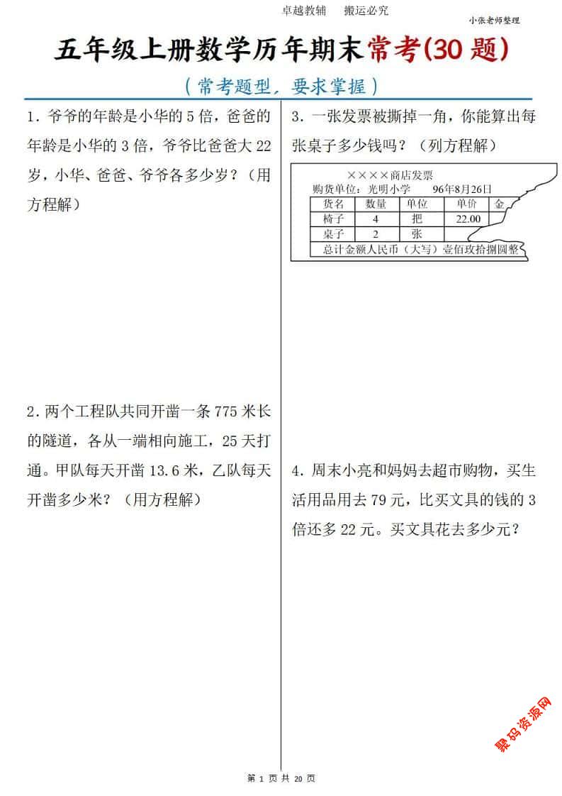 聚码网 五年级 五年级上册数学历年期末常考30题 http://www.appstore168.com/115908.html