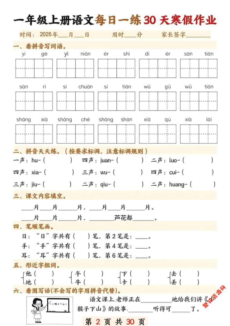 聚码网 一年级 一年级上语文寒假作业每日一练30天 http://www.appstore168.com/115935.html