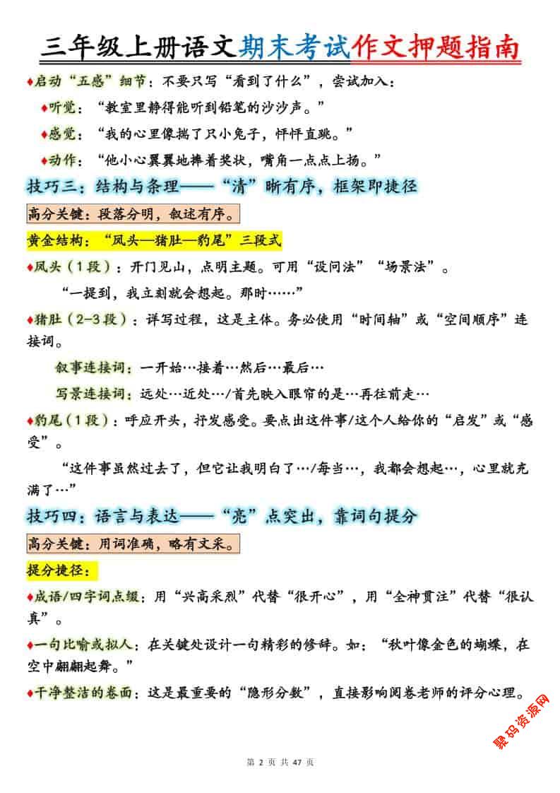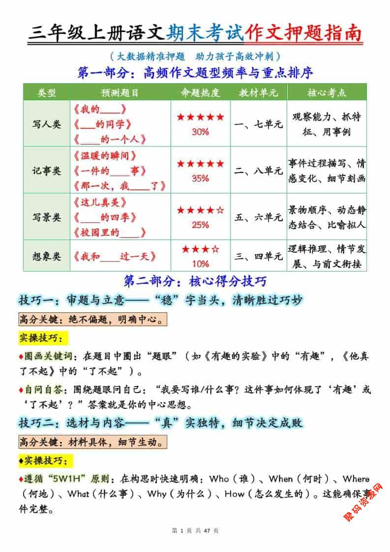 聚码网 三年级 25秋三上语文期末考试作文押题写作指南+范文47页 http://www.appstore168.com/115949.html