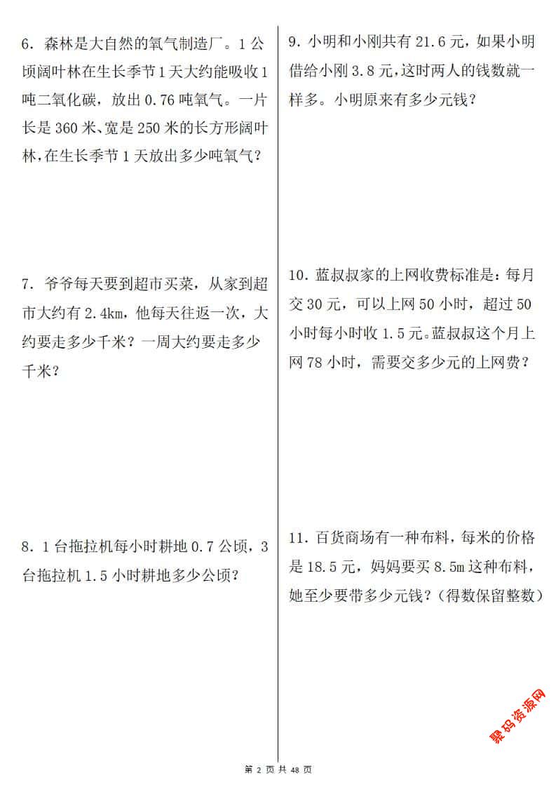- 五年级下数学常考易错应用题汇总 2026-02-14
