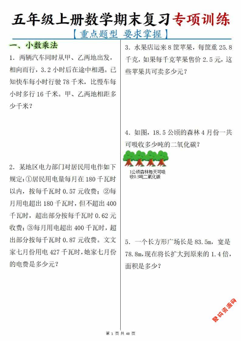 聚码网 五年级 五年级上册数学期末复习专项训练 http://www.appstore168.com/116204.html