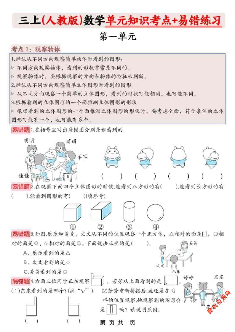 聚码网 三年级 三上人教版数学期末《单元知识考点+易错题练习》含答案43页 http://www.appstore168.com/116219.html