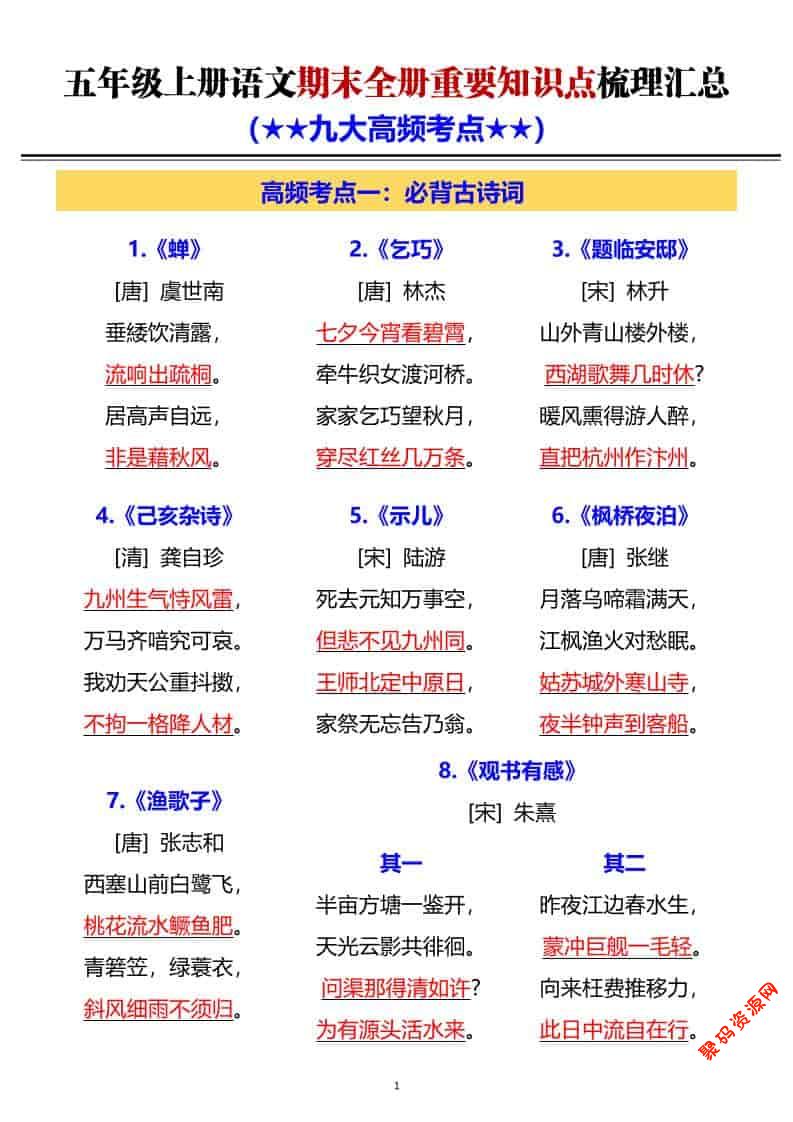 聚码网 五年级 G五年级上册语文期末全册重要知识点梳理汇总 http://www.appstore168.com/116229.html
