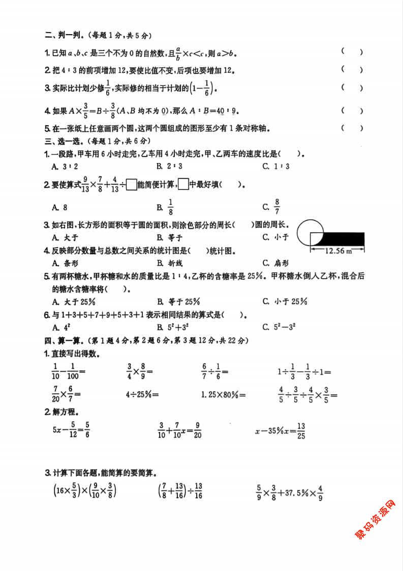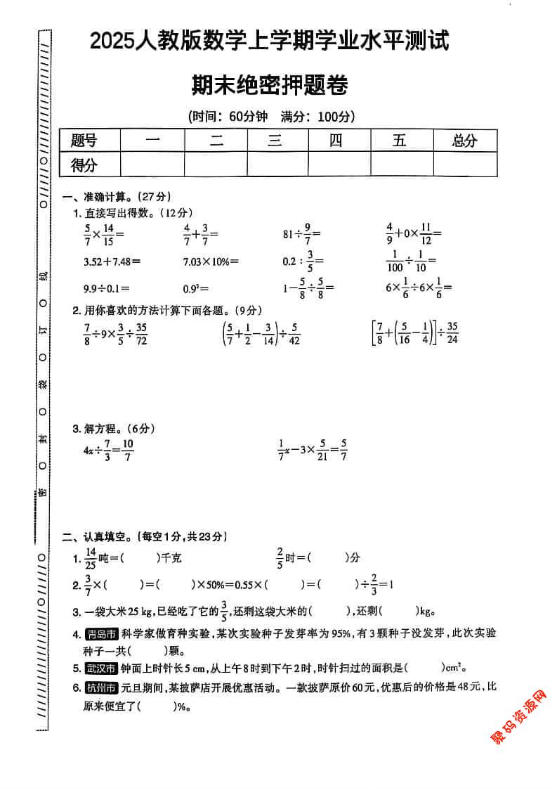 聚码网 六年级 2025秋六上数学期末试卷人教版 http://www.appstore168.com/116238.html
