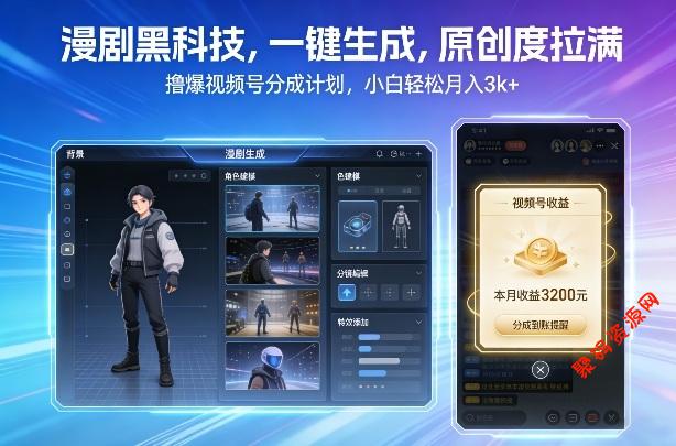 漫剧黑科技,一键生成,原创度拉满,撸爆视频号分成计划,小白轻松月入3k+