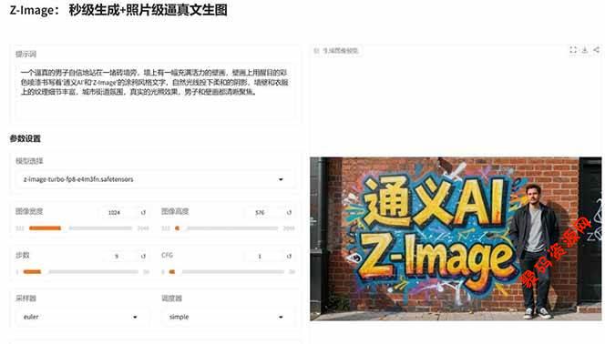 Z-Image-Turbo:已开源!速度王者!在专业显卡上1秒内出图,家用显卡(8G显存)也能流畅运行。擅长生成照片级真实图像,中英文文字渲染精准,能准确理解用户指令。
