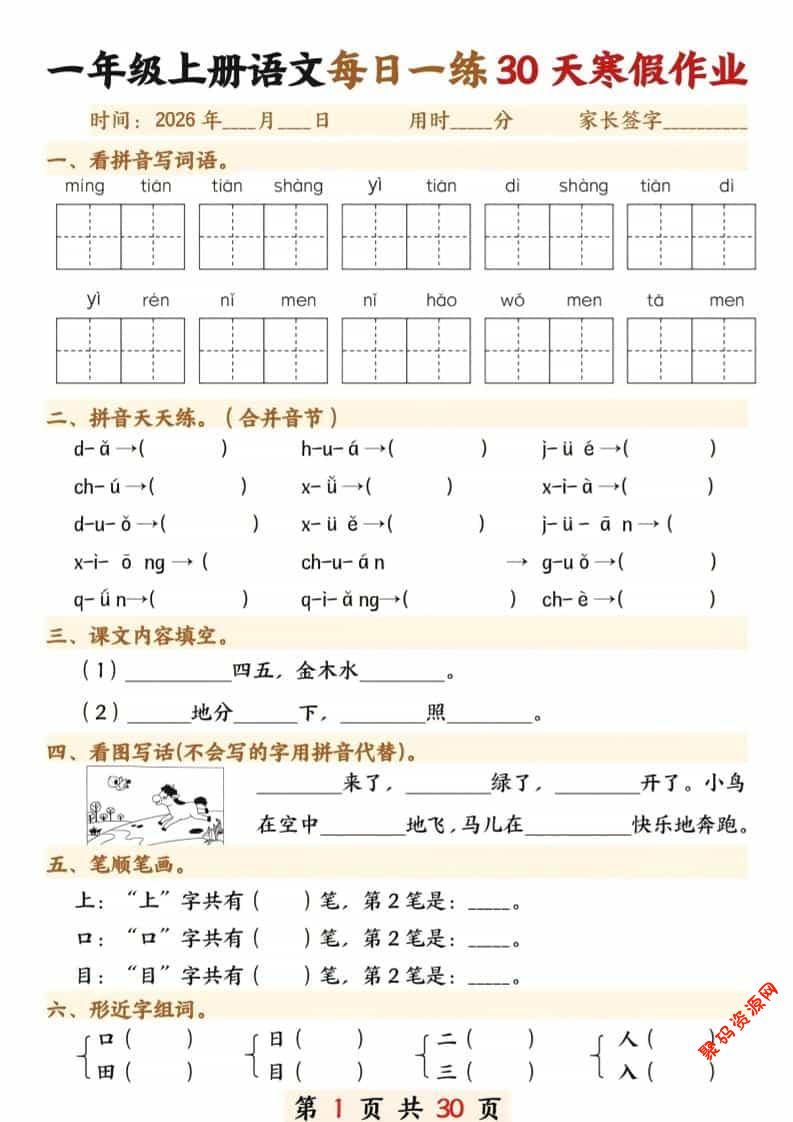 聚码网 一年级 一年级上语文寒假作业30天 http://www.appstore168.com/116661.html