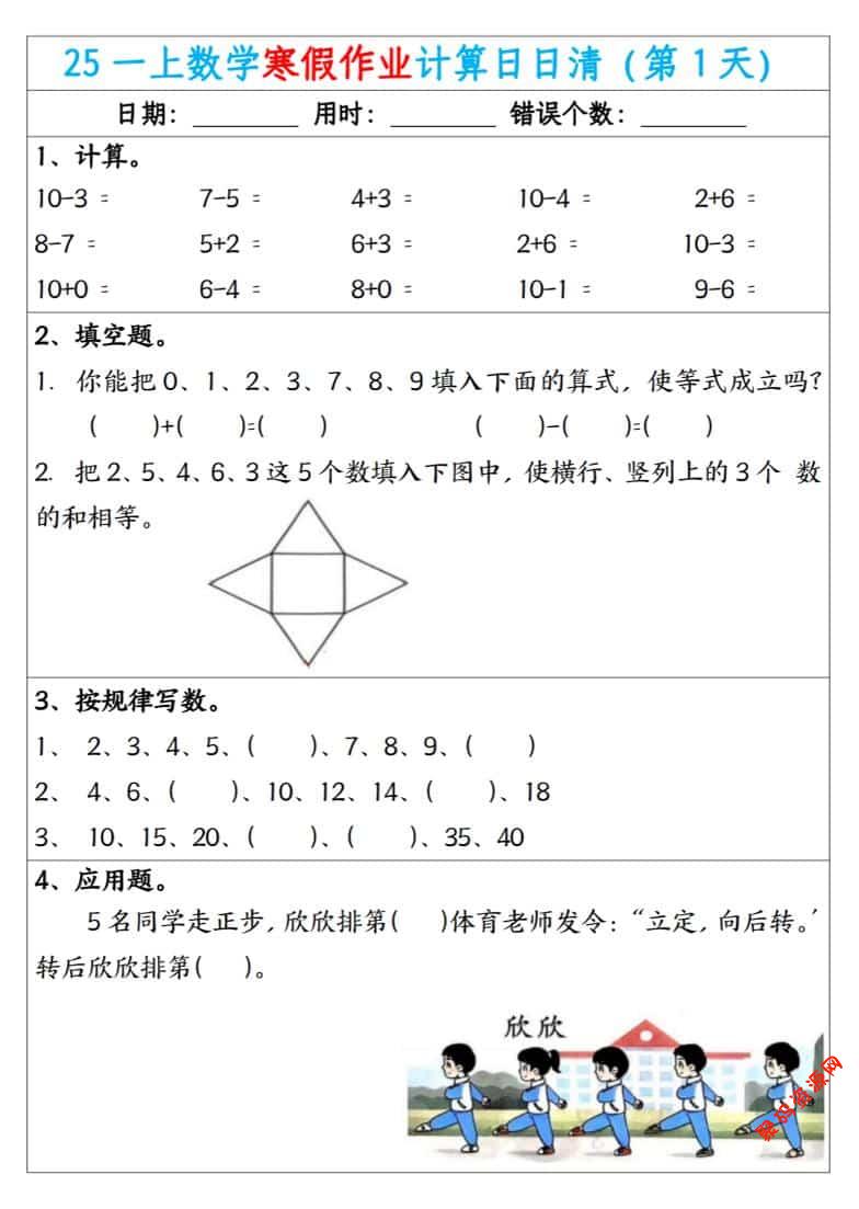 聚码网 一年级 一年级上数学寒假作业计算日日清 http://www.appstore168.com/116675.html
