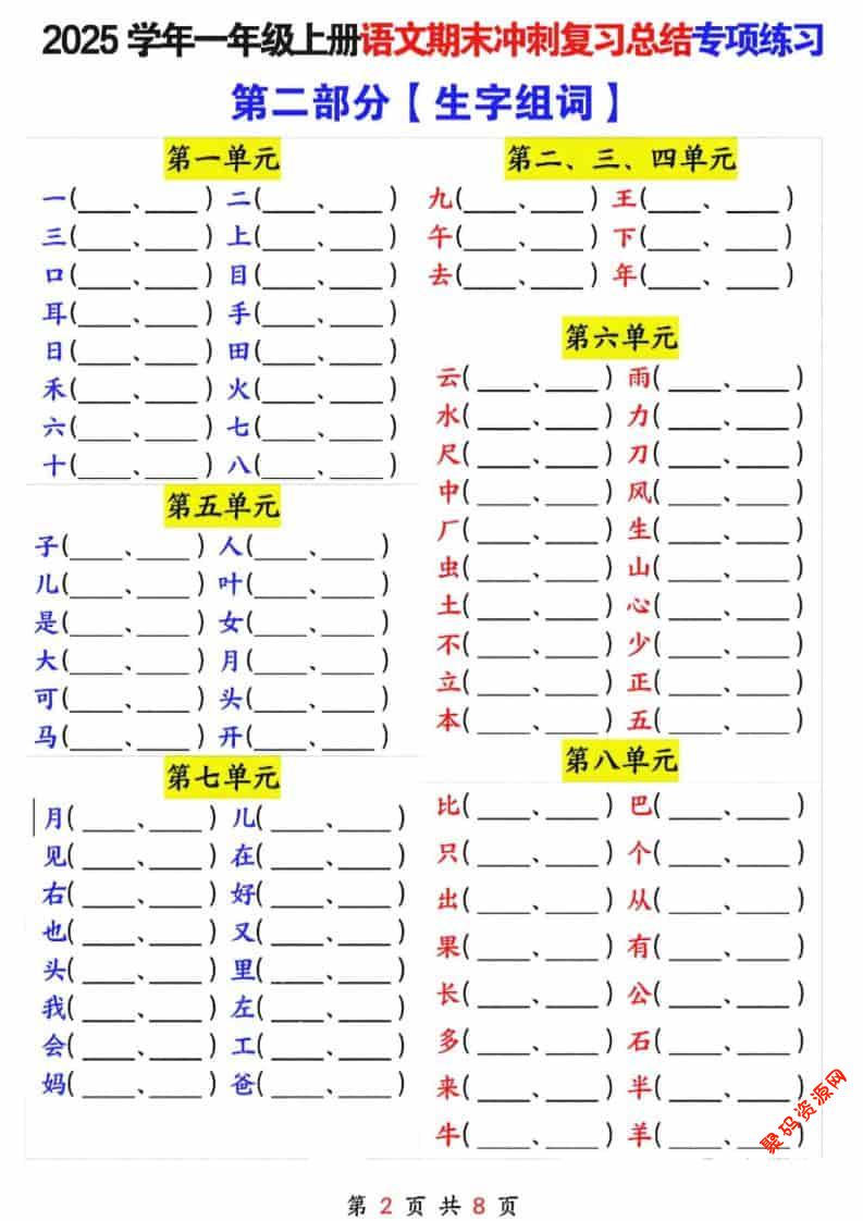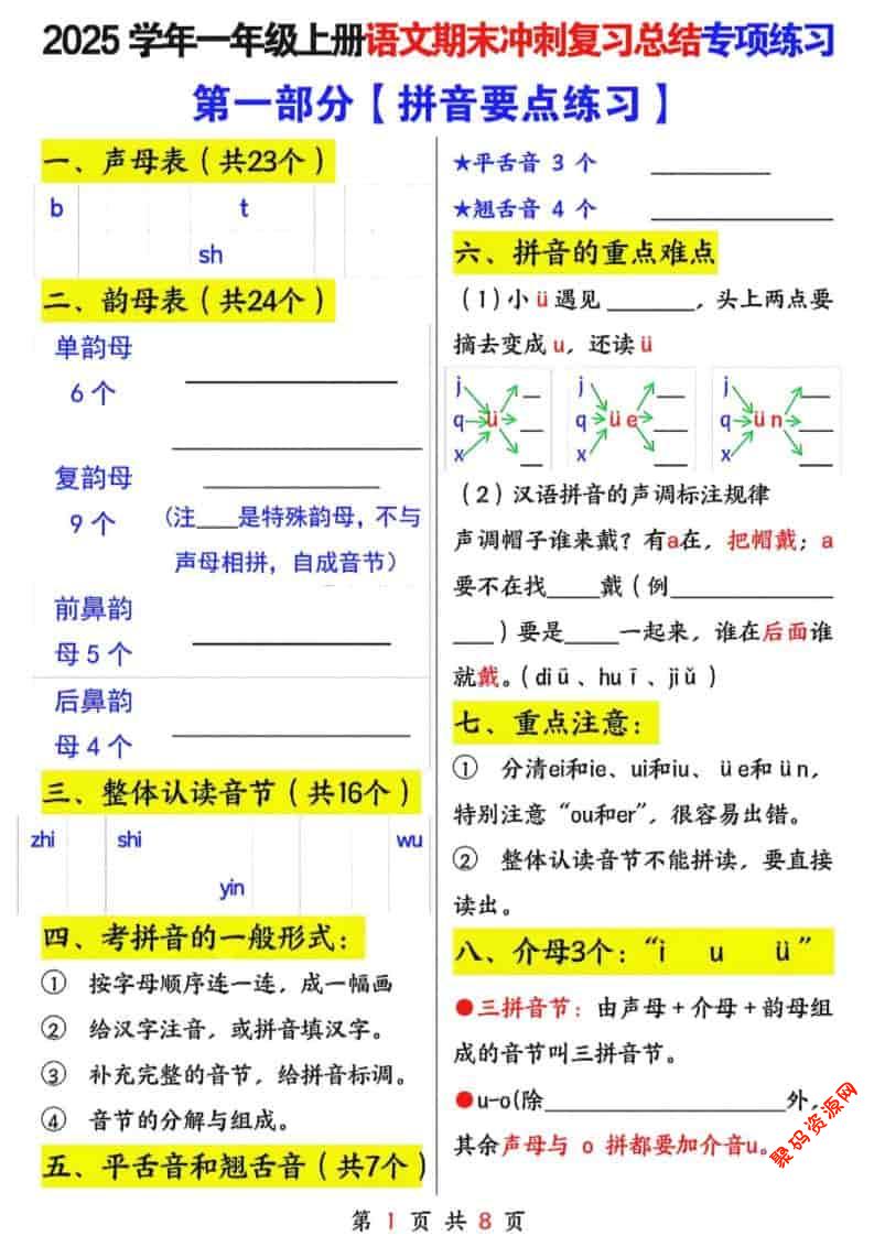 聚码网 一年级 25年一上语文期末冲刺复习总结专项练习六大部分(8页) http://www.appstore168.com/116685.html
