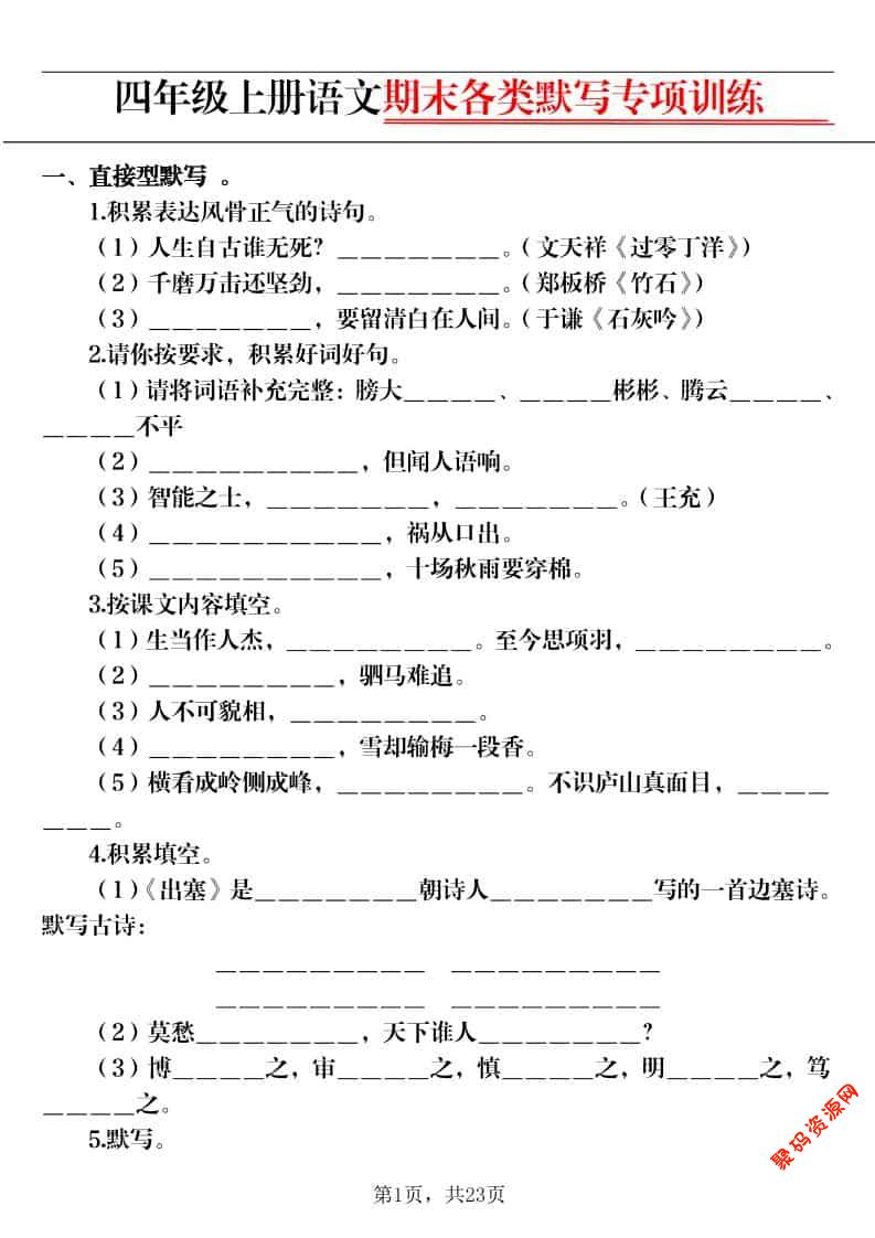 聚码网 四年级 四上语文期末各类默写专项训练(含答案23页) http://www.appstore168.com/116853.html